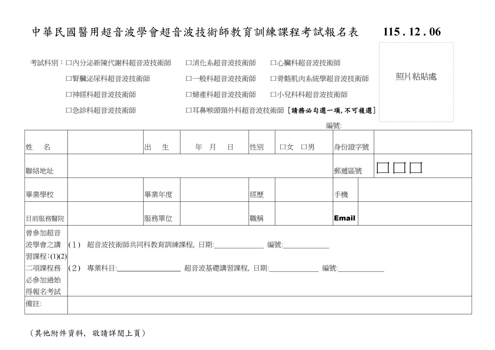 中華民國醫用超音波學會超音波技術師教育訓練課程認證考試報名