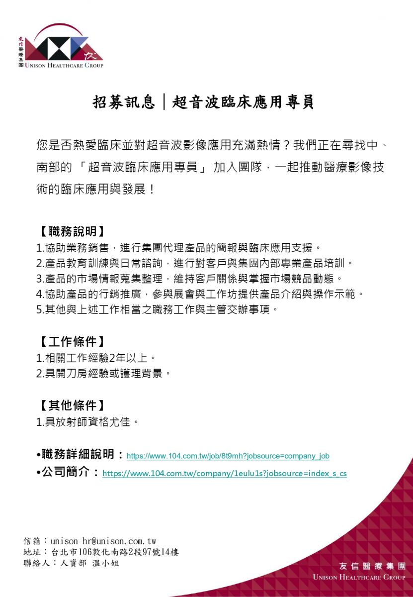 友信醫療集團 招募訊息 / 超音波臨床應用專員