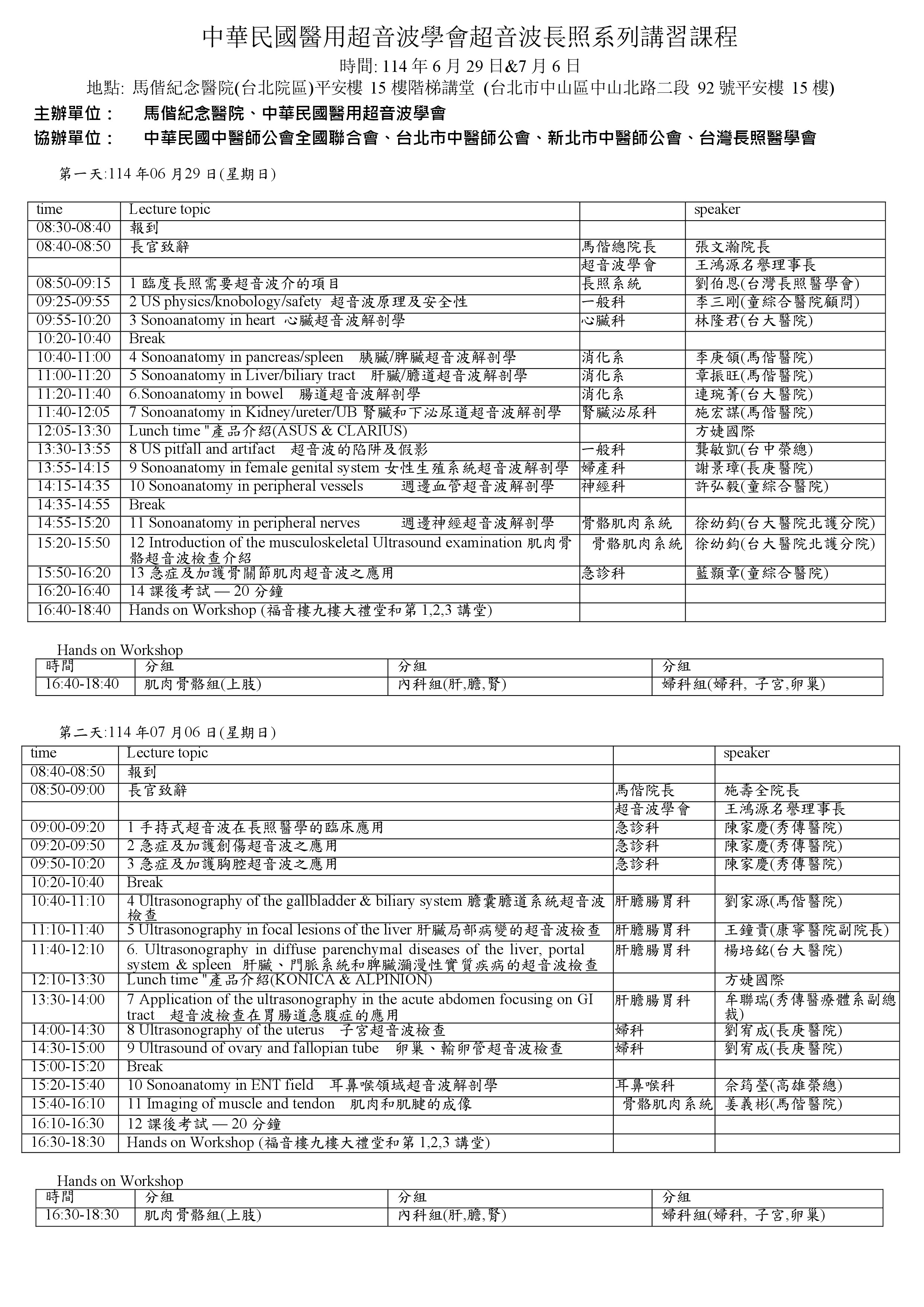 主辦單位: 馬偕紀念醫院、中華民國醫用超音波學會